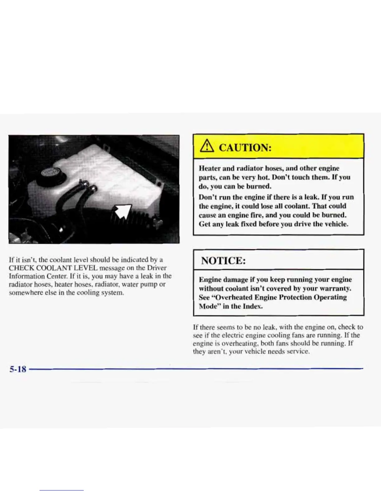 CHECK COOLANT LEVEL message on the Driver