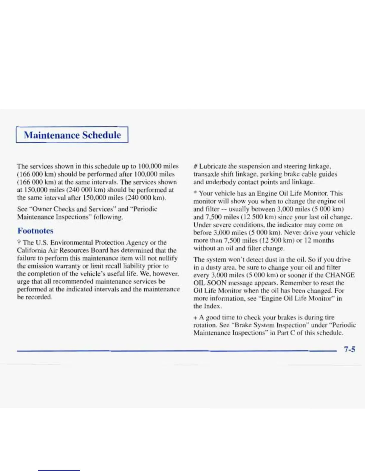 See “Owner Checks and Services’’ and “Periodic