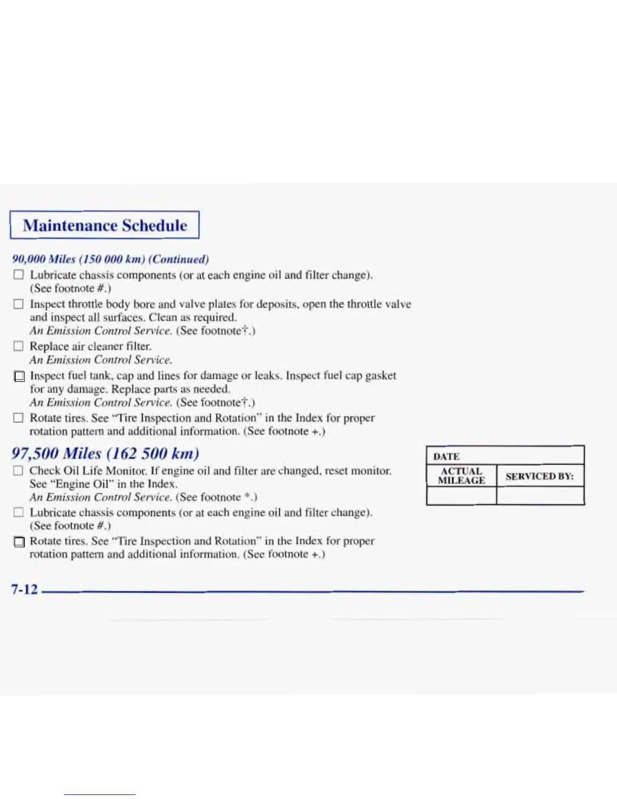 Rotate tires. See “Tire Inspection and Rotation” in the Index for proper