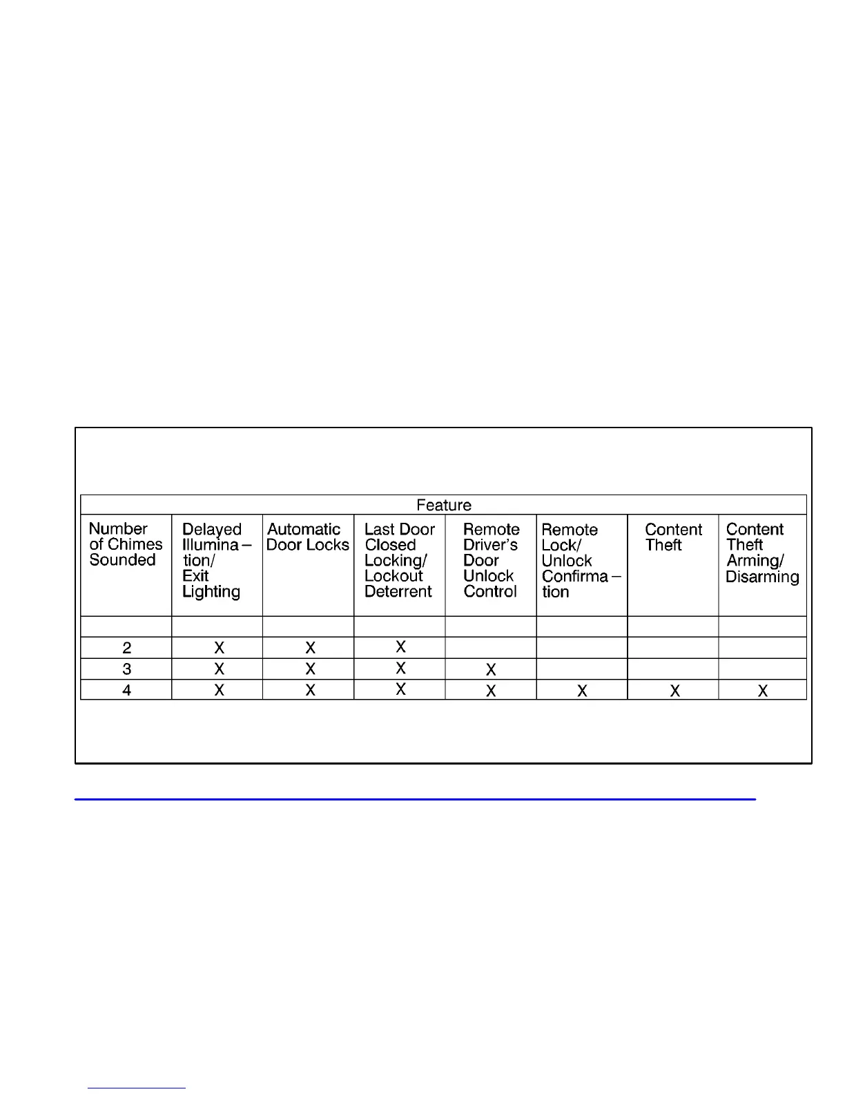 program depend on the options that came with your vehicle. The following chart shows the features that can be