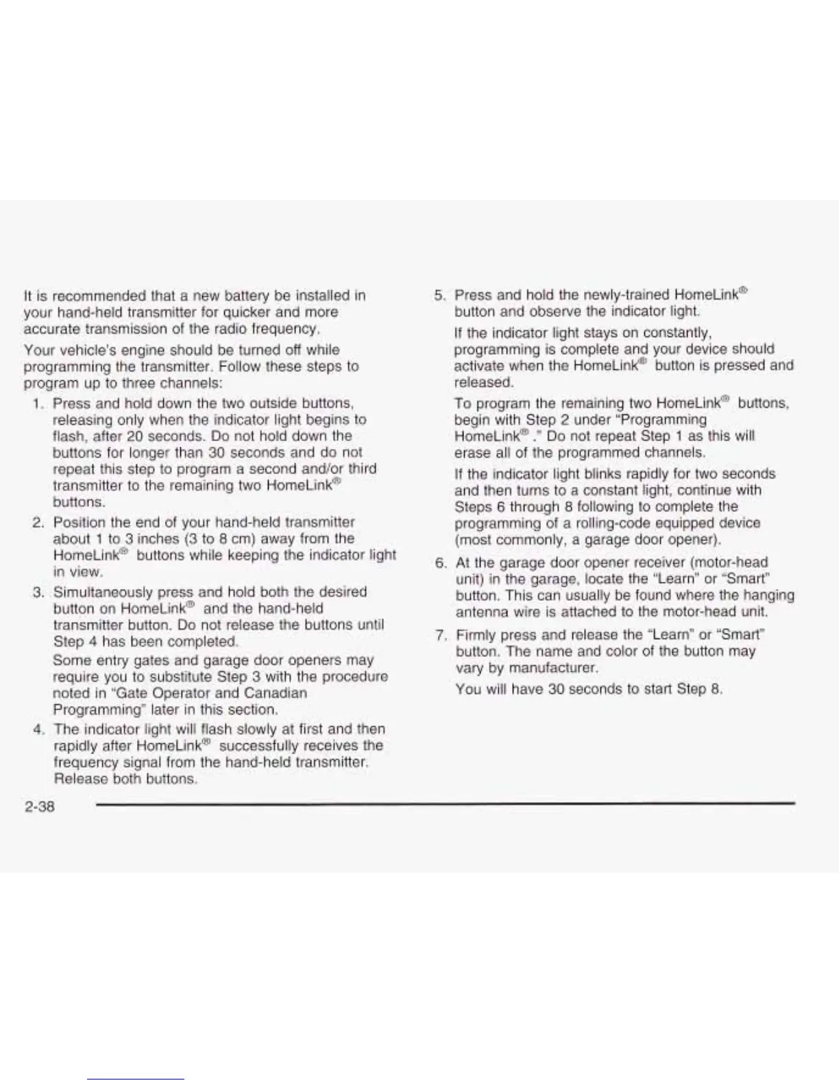 button on HomeLink@ and the hand-held