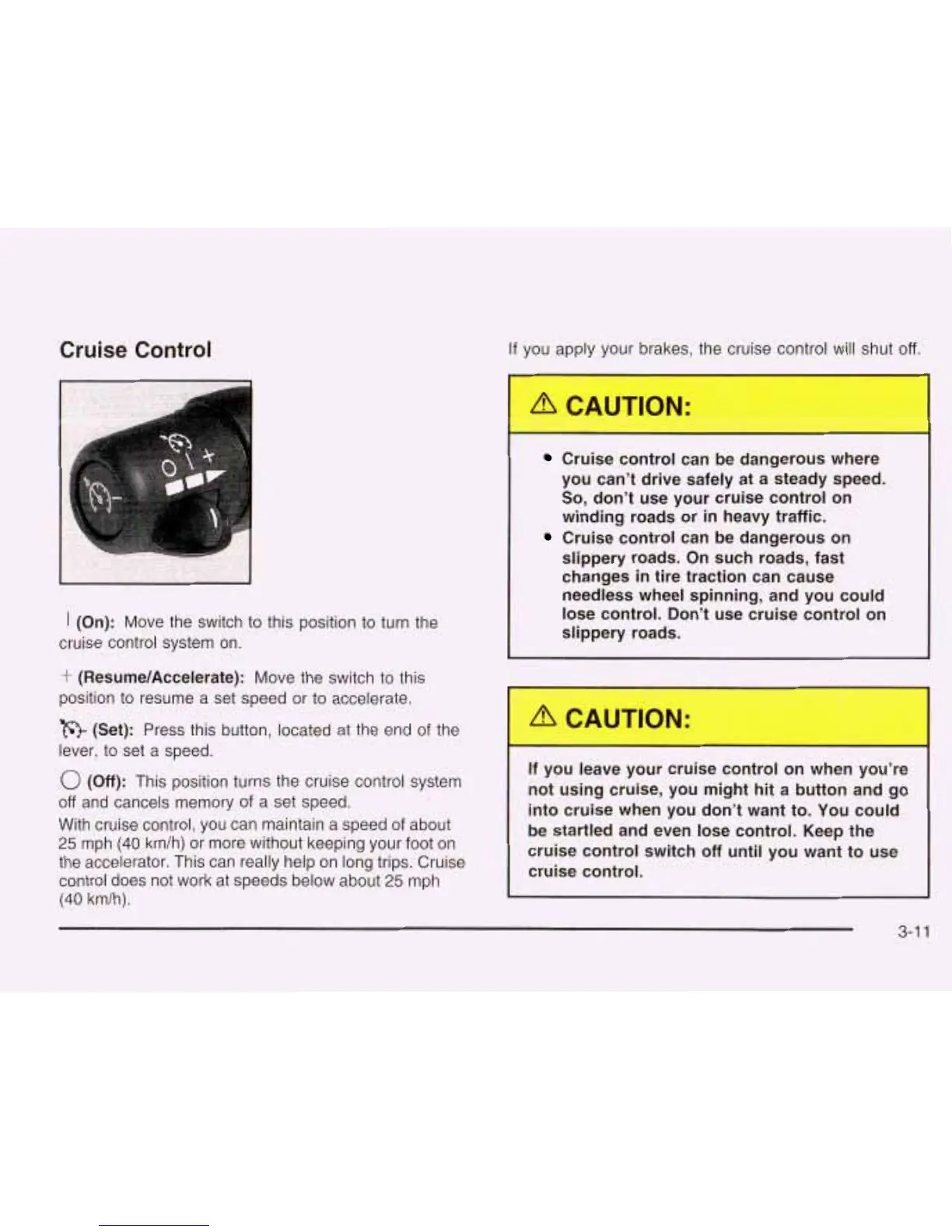 lose control. Don’t use cruise control on