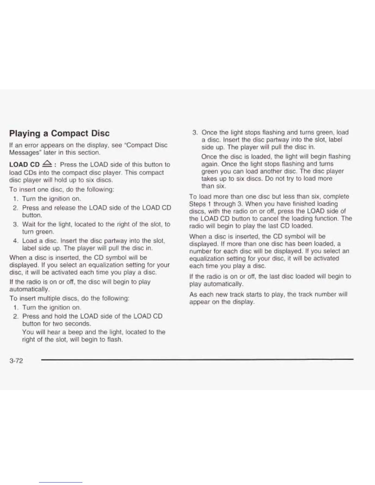 load CDs into the compact disc player. This compact