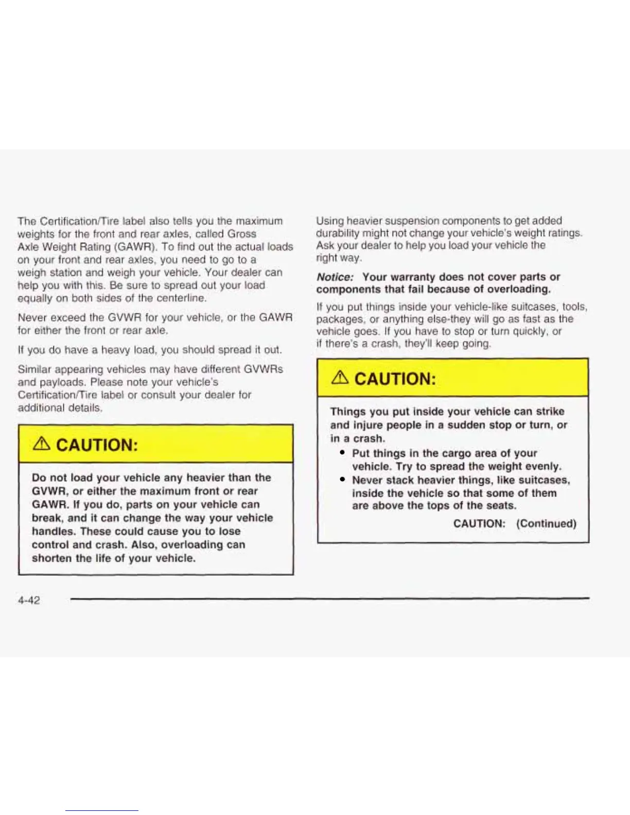 Never exceed the GVWR for your vehicle, or the GAWR