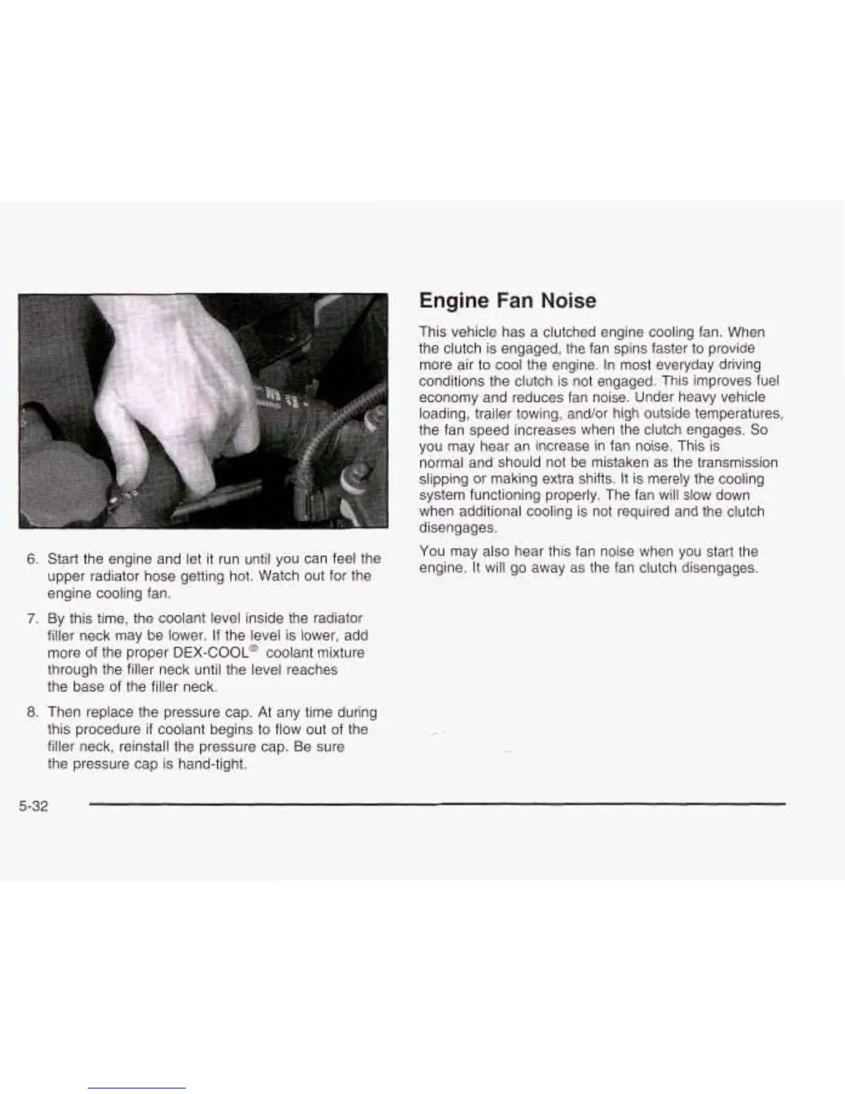 filler neck, reinstall the pressure cap. Be sure