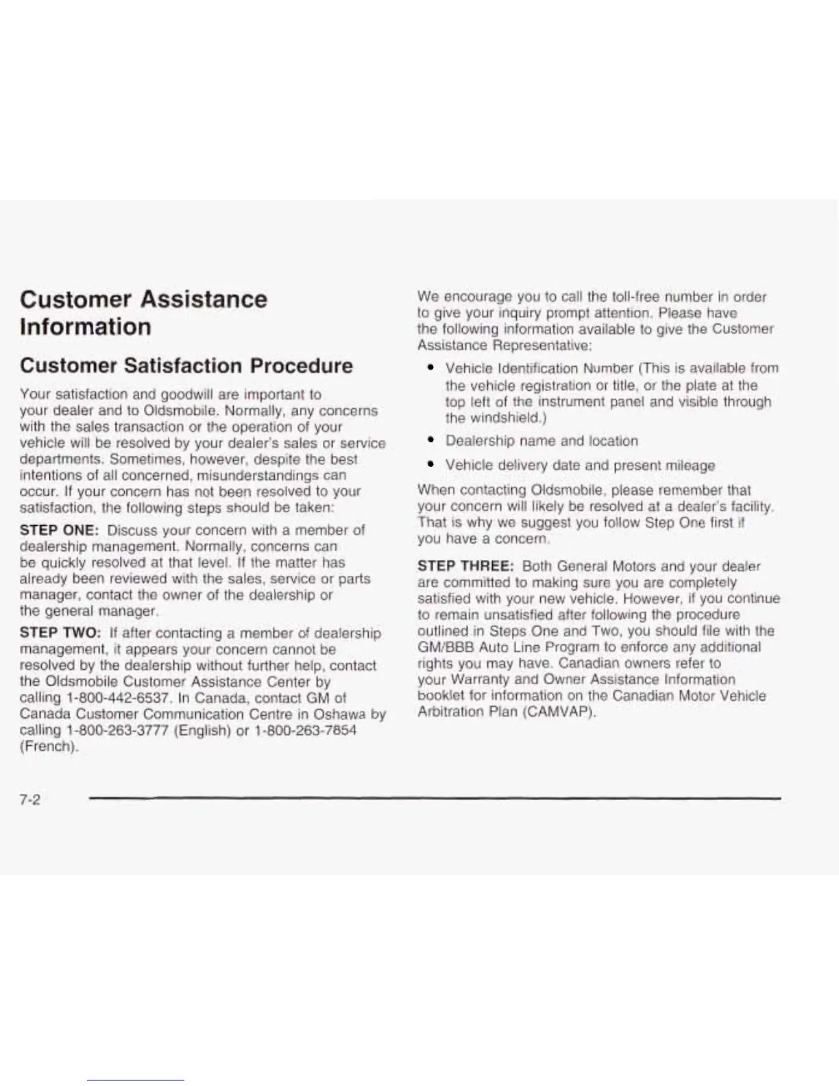 calling 1-800-442-6537. In Canada, contact GM of