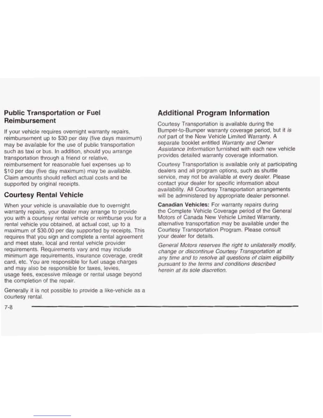Motors of Canada New Vehicle Limited Warranty,