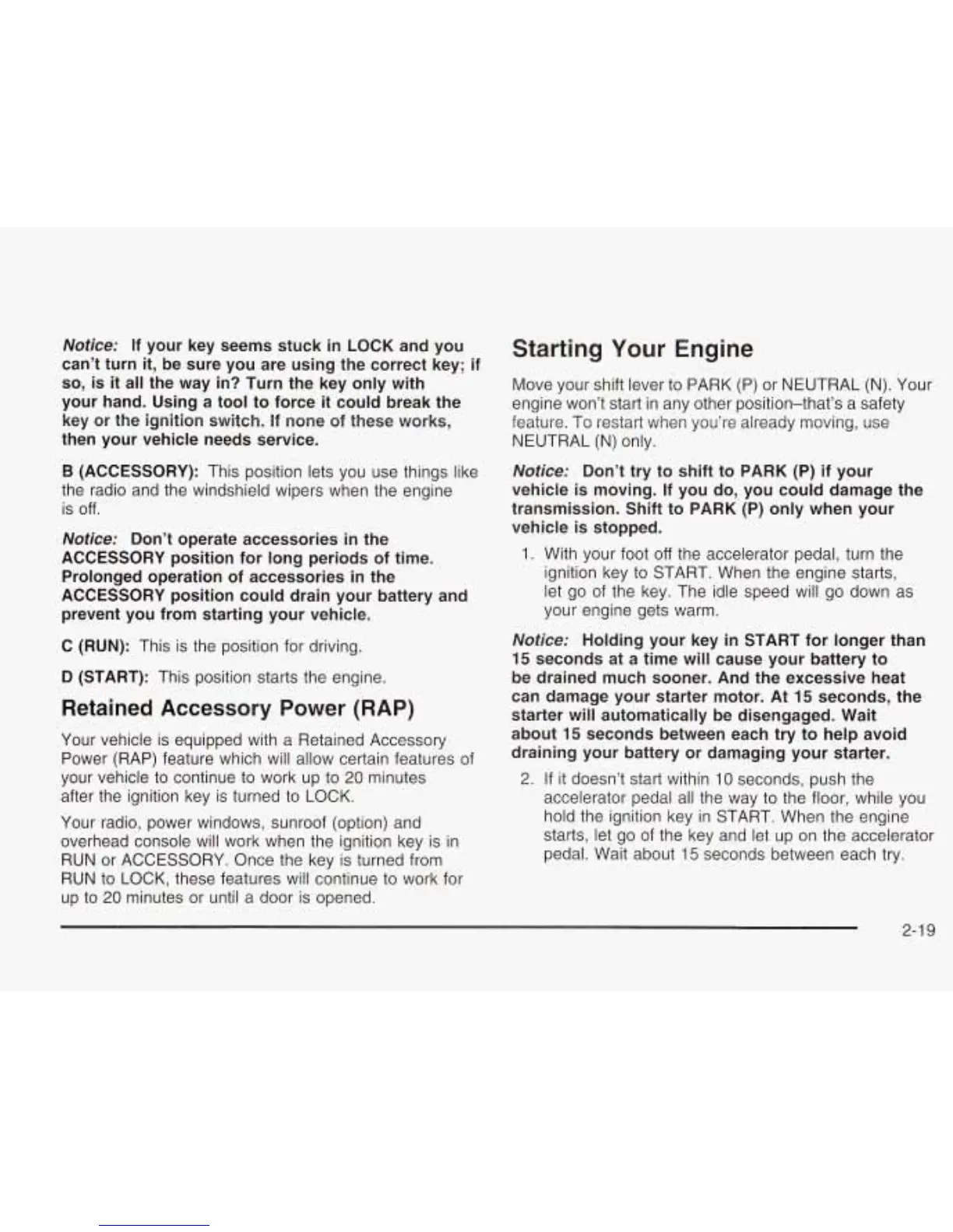 hold the ignition key in START. When the engine