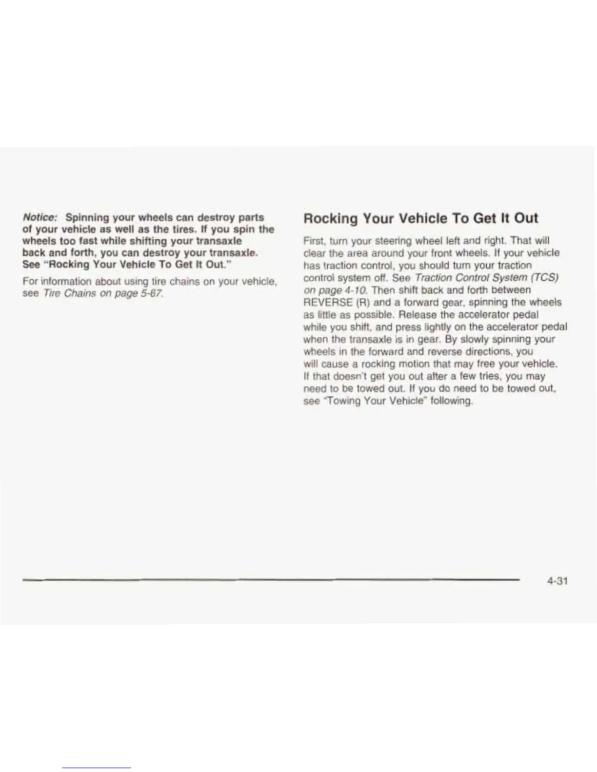 cause  a  rocking motion that may free your vehicle.