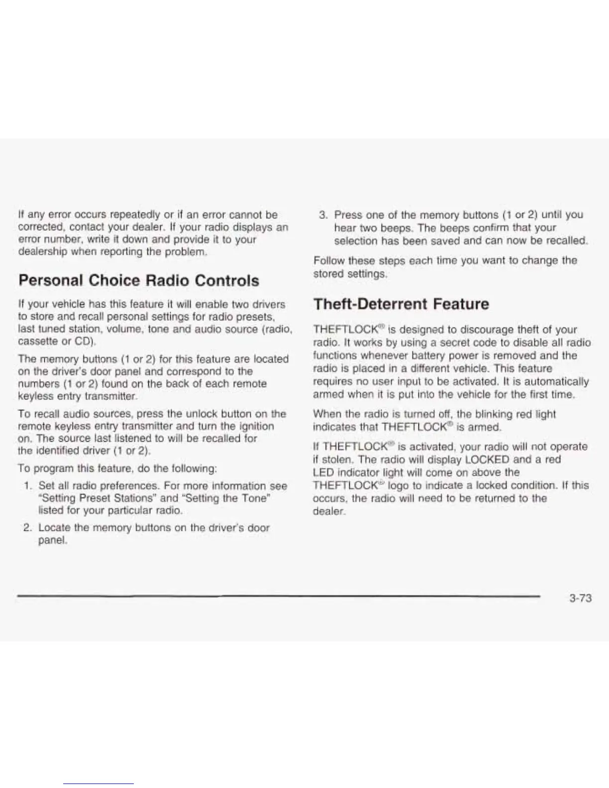 THEFTLOCK@ is activated, your radio will not operate