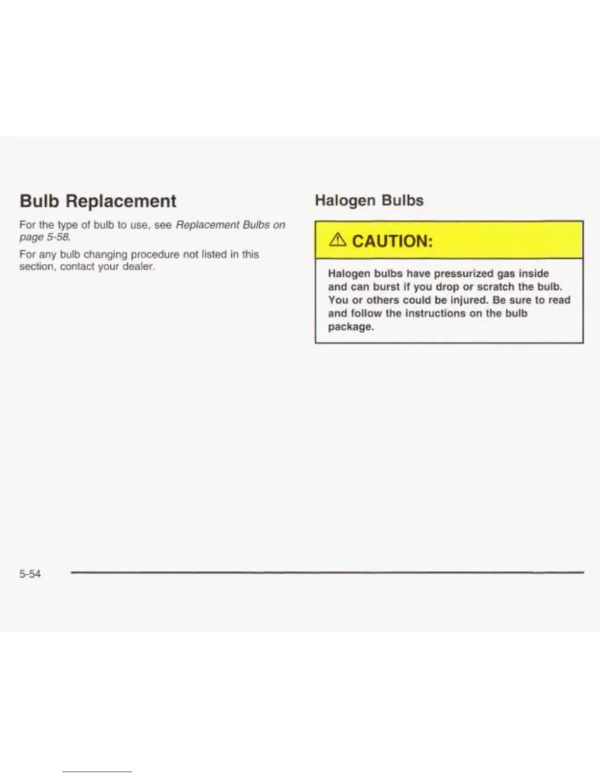 Oldsmobile AURORA 2003 - Bulb Replacement; Halogen Bulbs