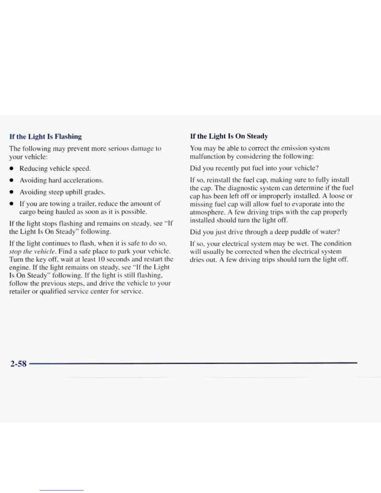 the light remains on steady, see “If the Light