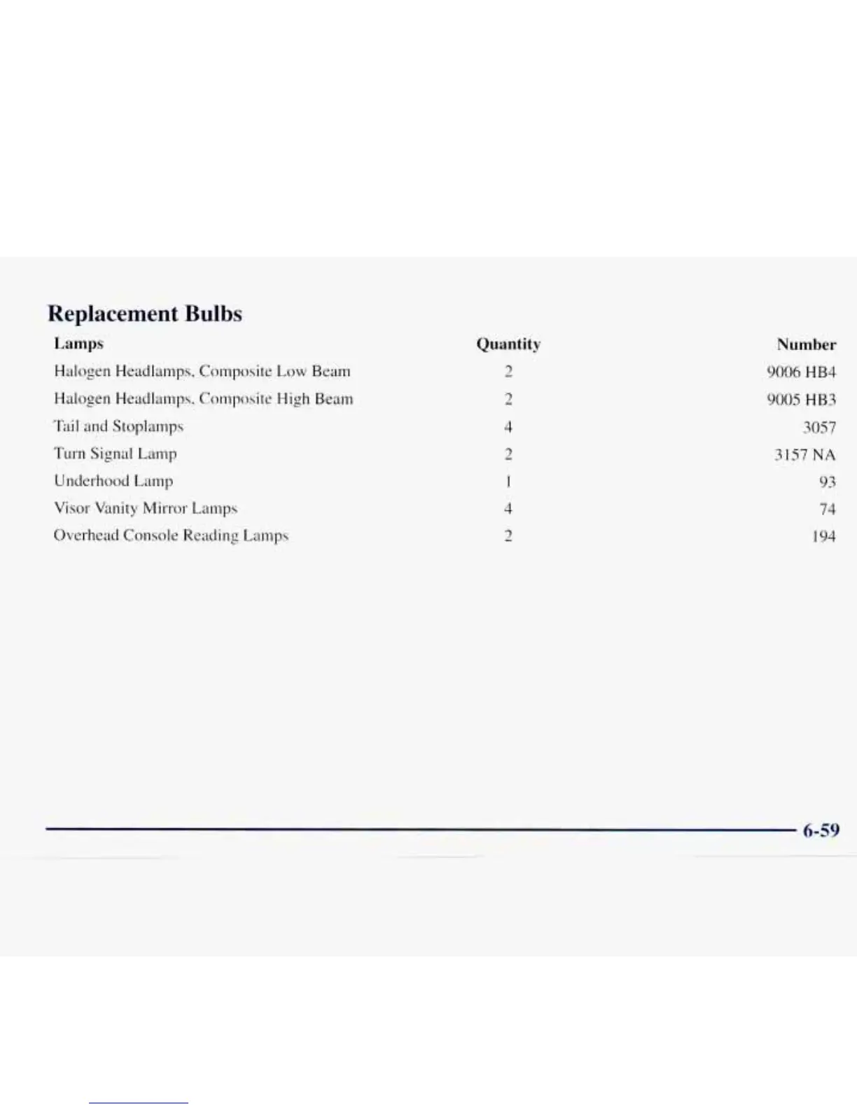 Oldsmobile Bravada 1997 - Replacement Bulb Specifications