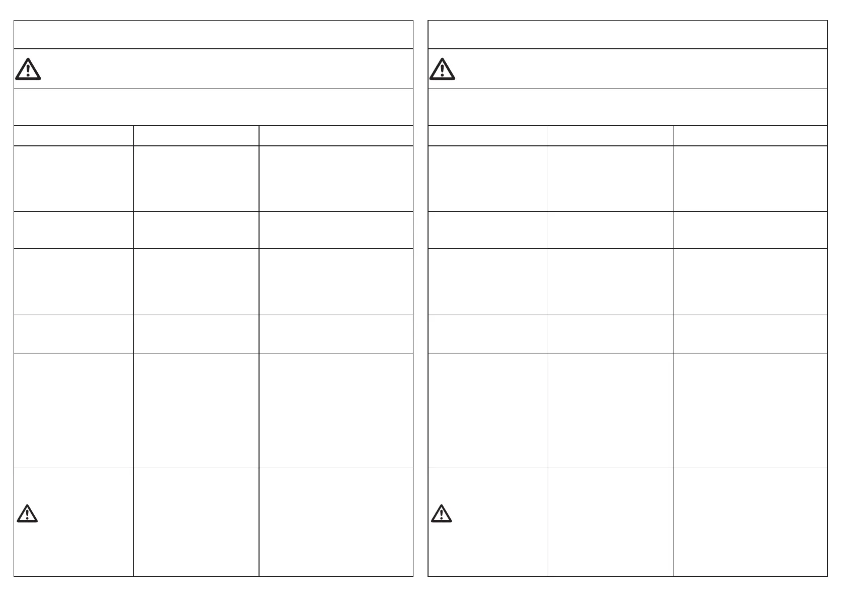 TROUBLESHOOTING CHART