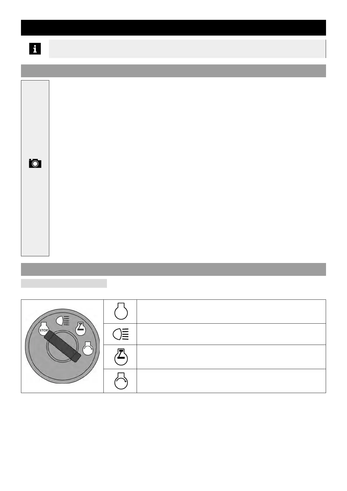 Voor het starten / uitzetten van de motor. Deze schakelaar heeft de volgende 4 posities: