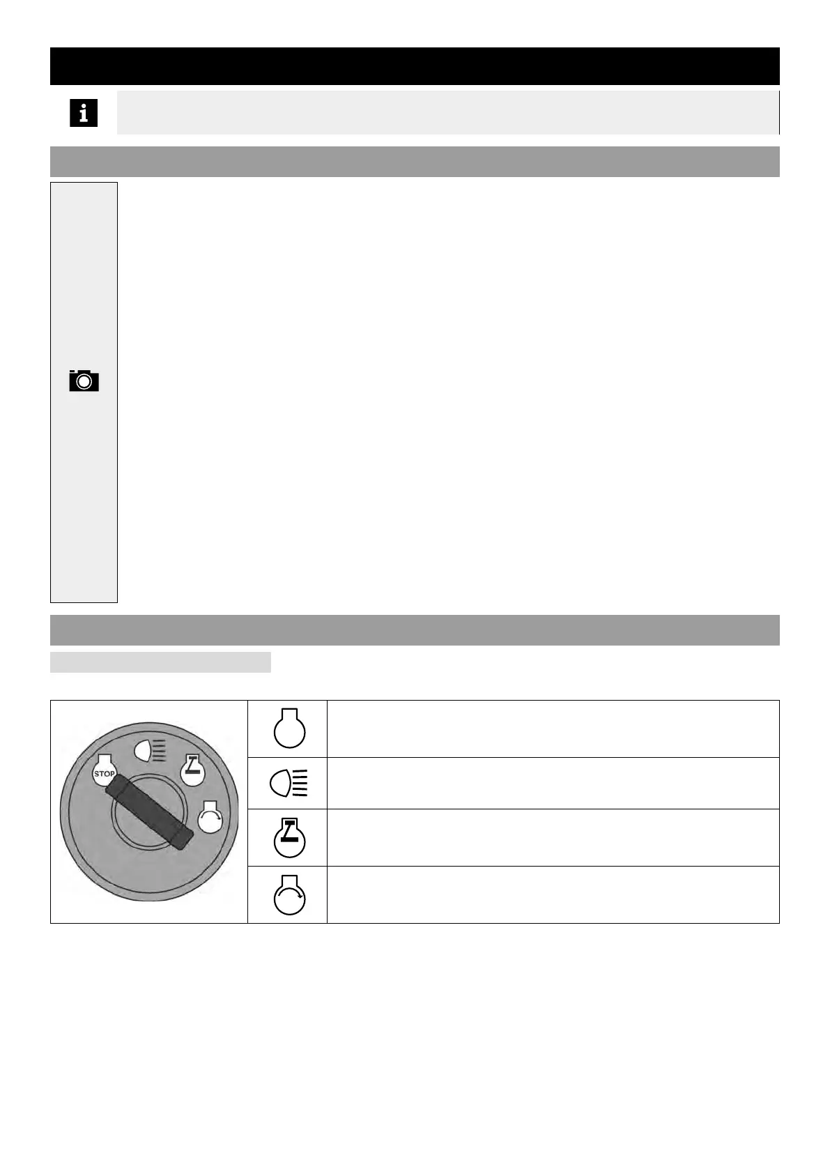 Serves to start up / shut off the engine. It has the following 4 positions: