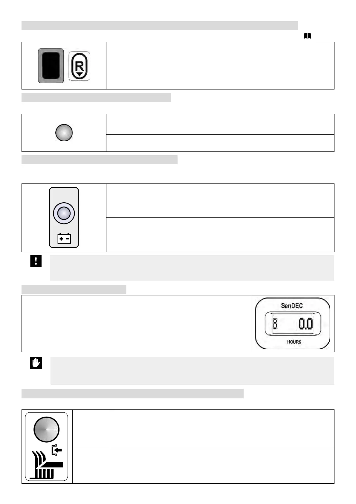 The R switch serves to disengage the automatic mowing deck disengagement function when reversing ( 5.5.1).