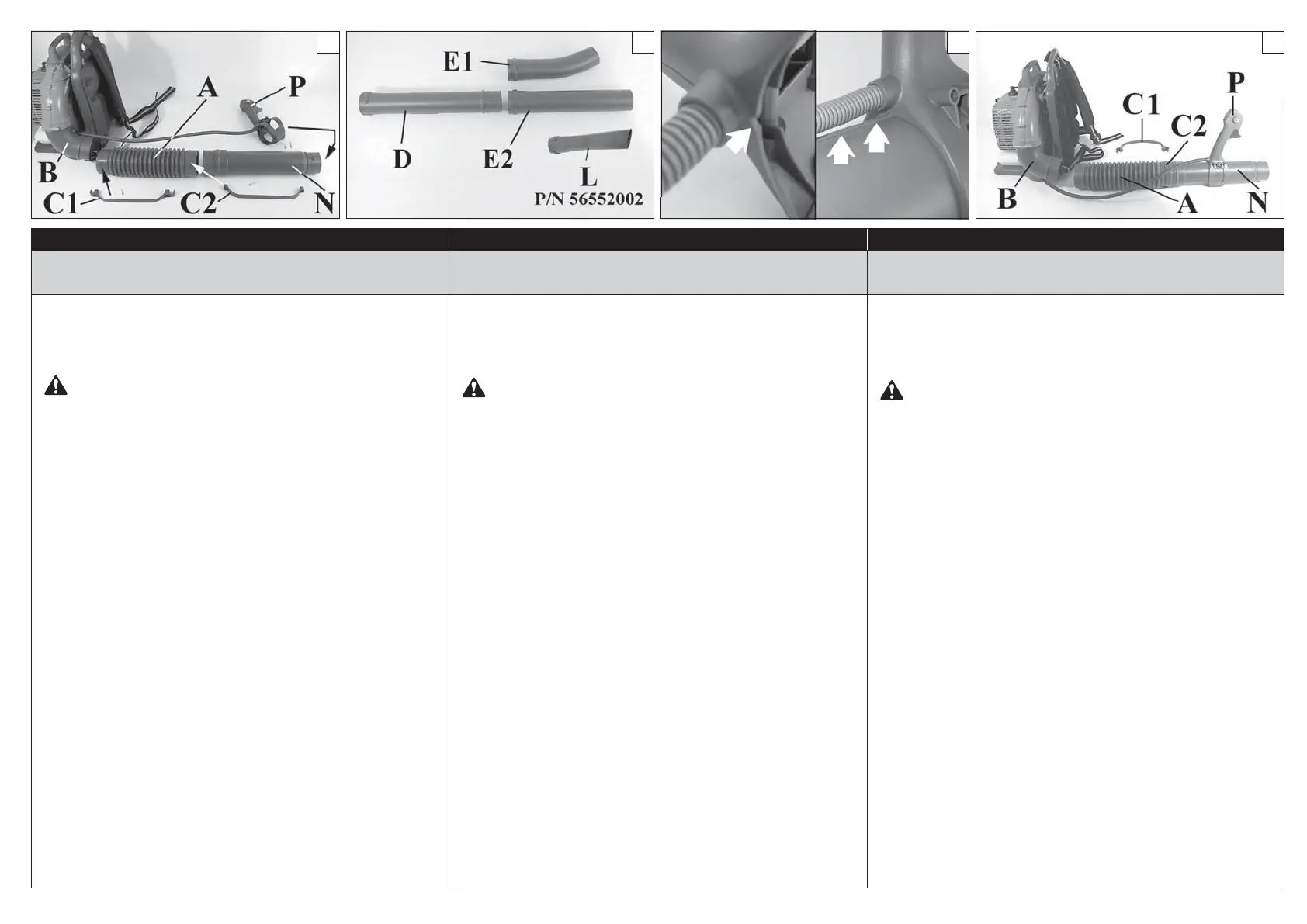 3. Innestare il tubo soffiatore (D, Fig.2) e l’ugello (E1) o