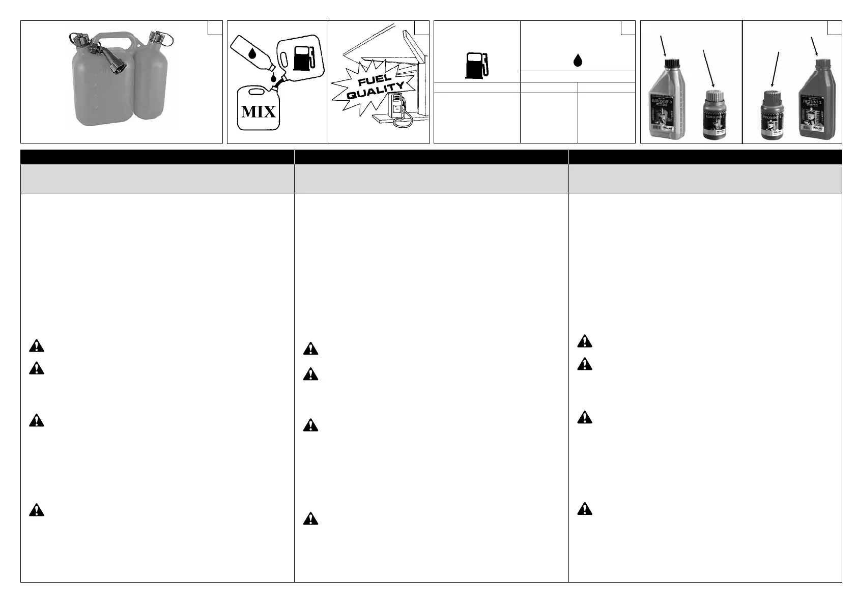 CAUTION - For the mixture, never use a fuel with an ethanol