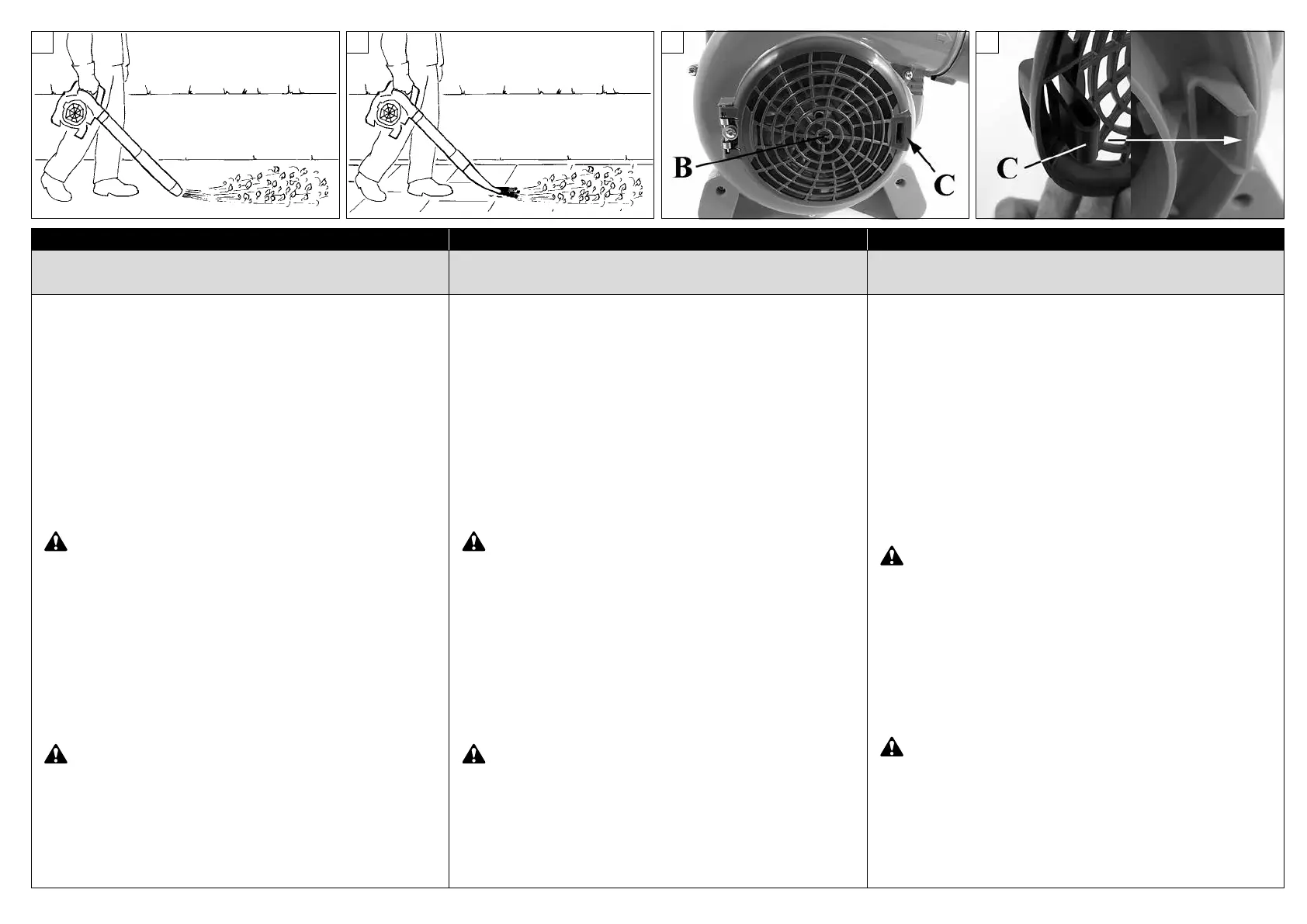 WARNIG - When working inside corners, blow from