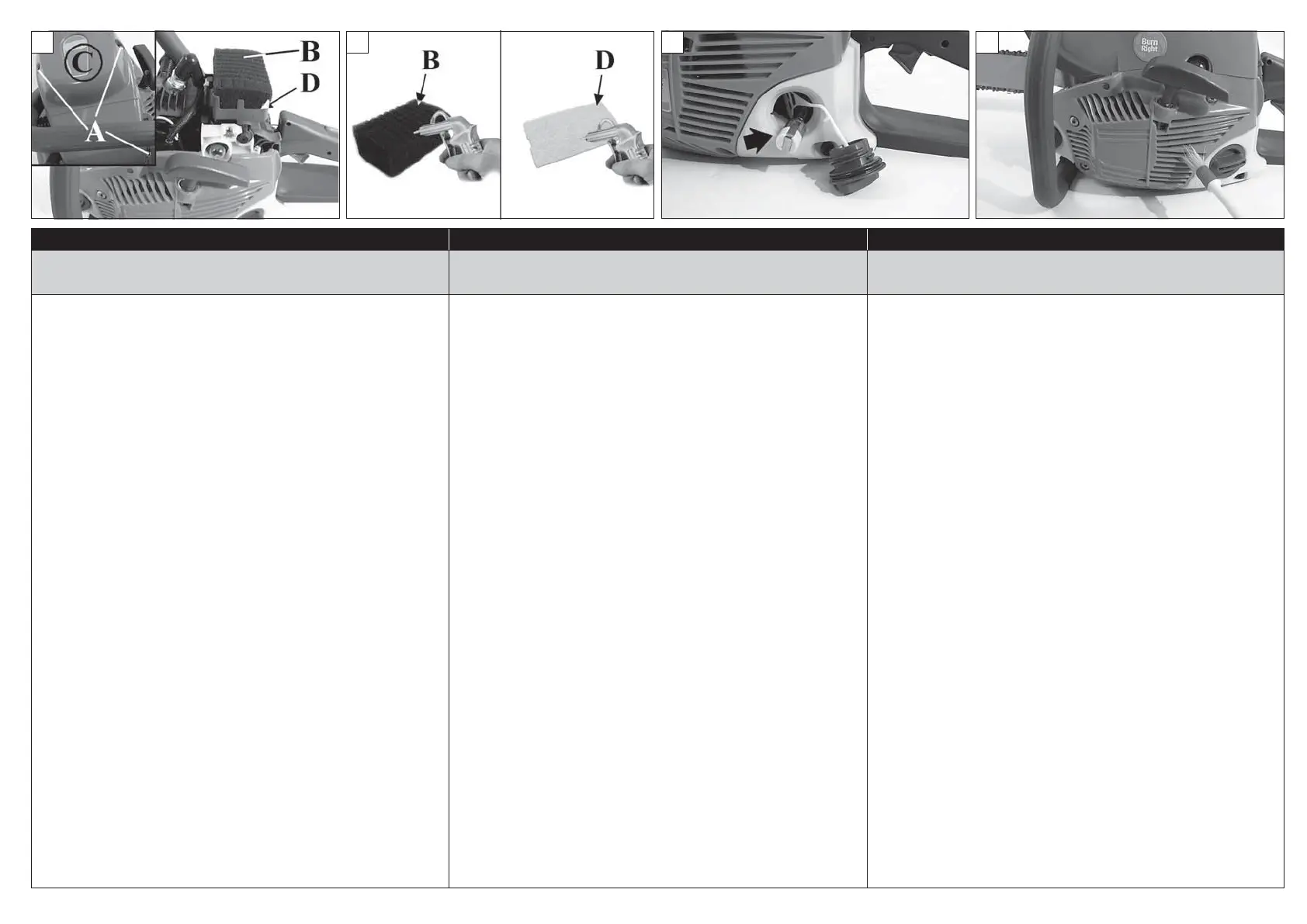 (B): pulire con sgrassante Emak cod. 001101009A, lavare con