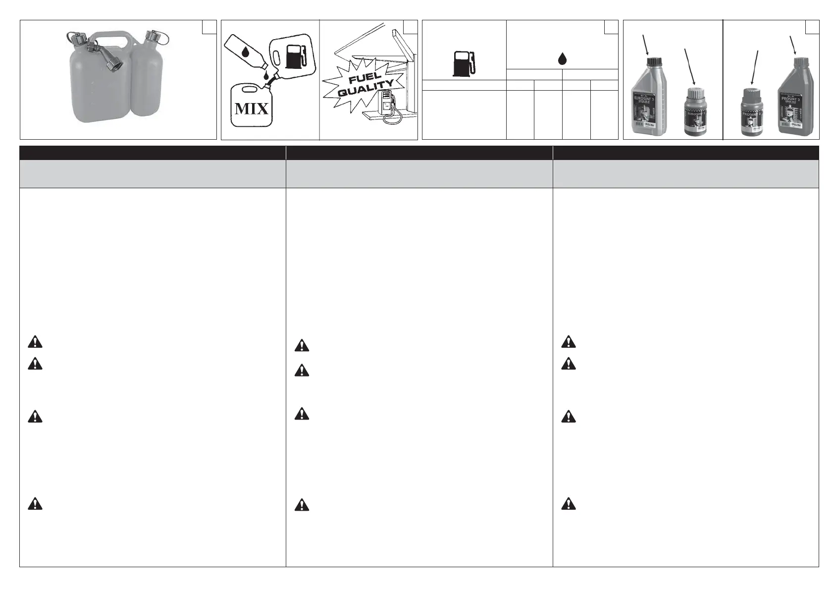 CAUTION - For the mixture, never use a fuel with an ethanol