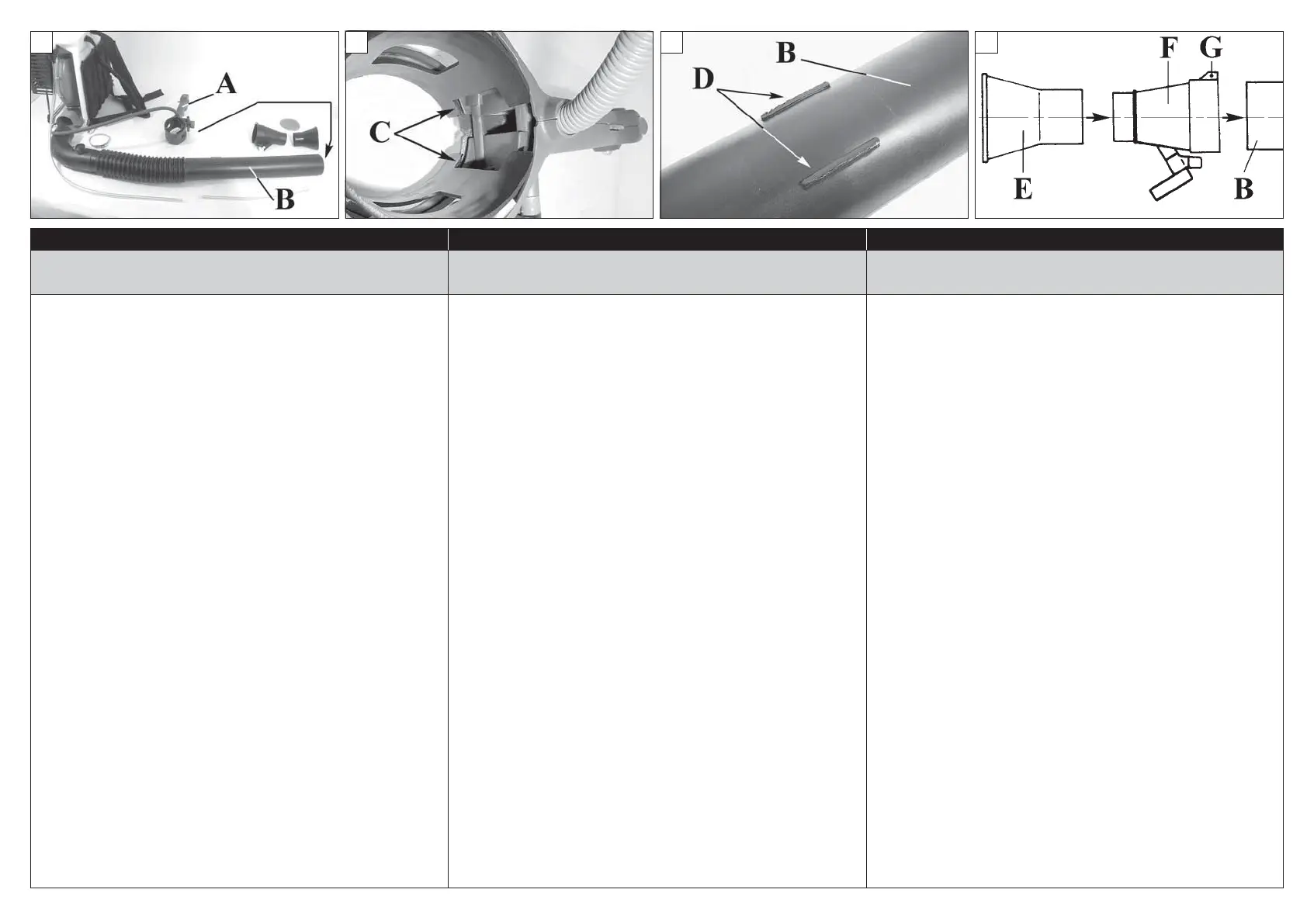 1. Introduire la poignée (A, Fig.1-5) sur le tuyau (B) en ayant