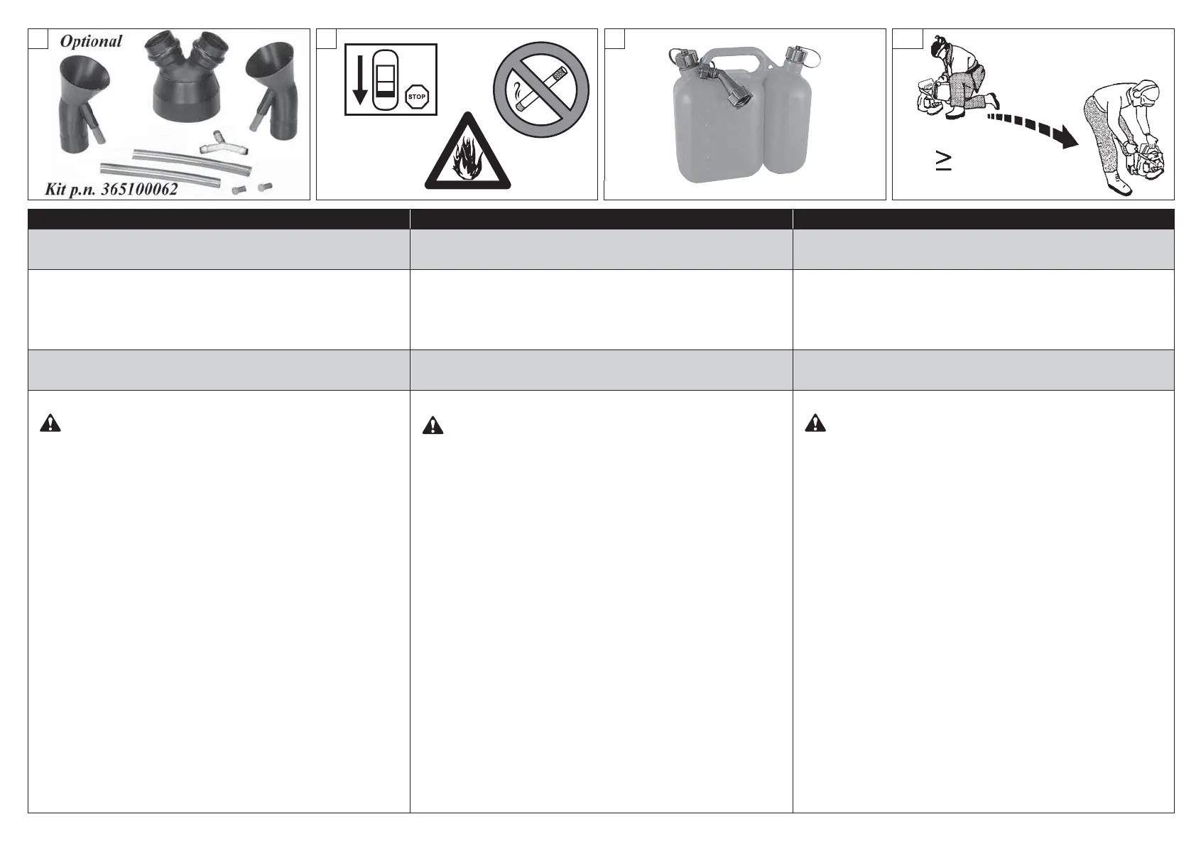 · Stoccare il carburante in un luogo fresco, asciutto e ben ventilato.