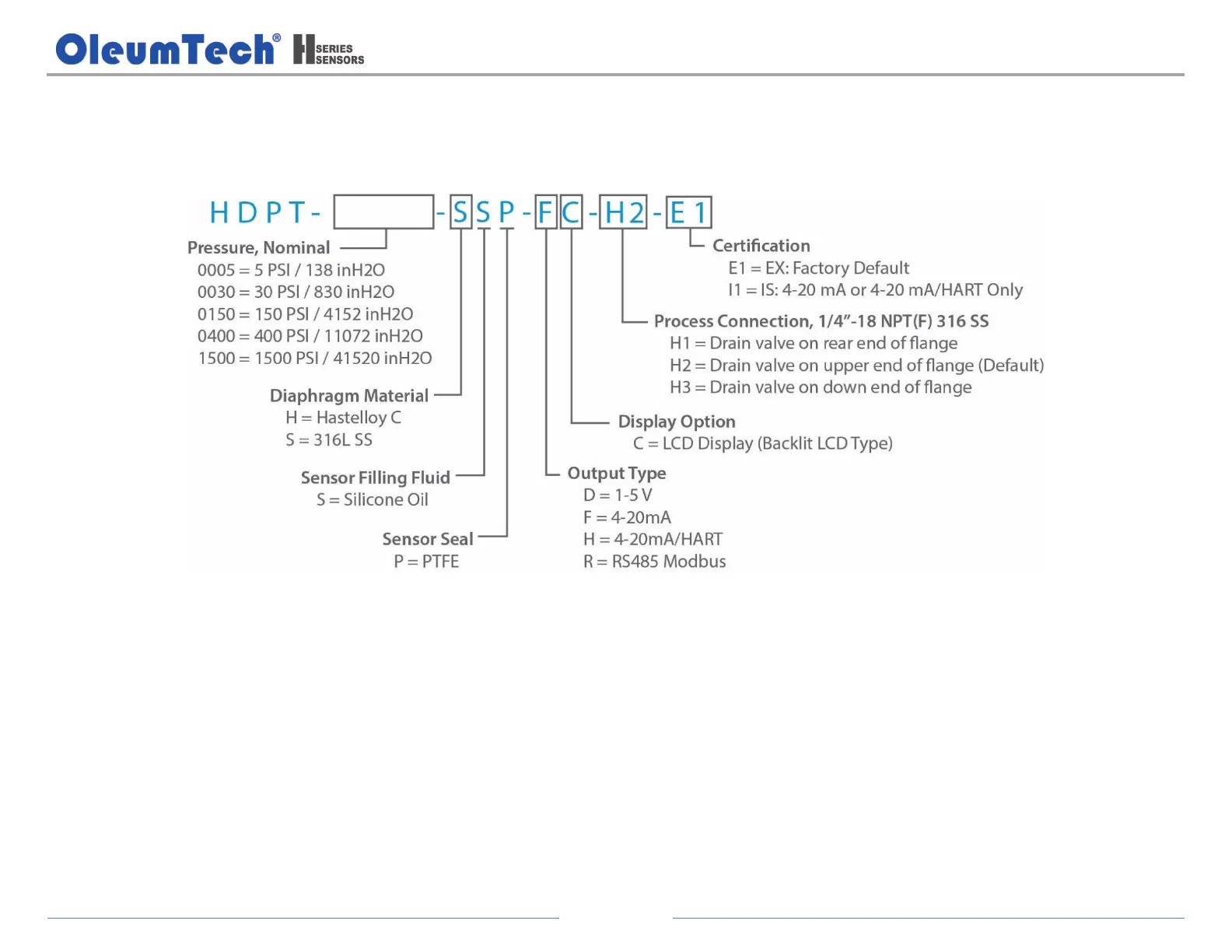 OleumTech H Series - 6. Product Selection Guide; a. Ordering Information