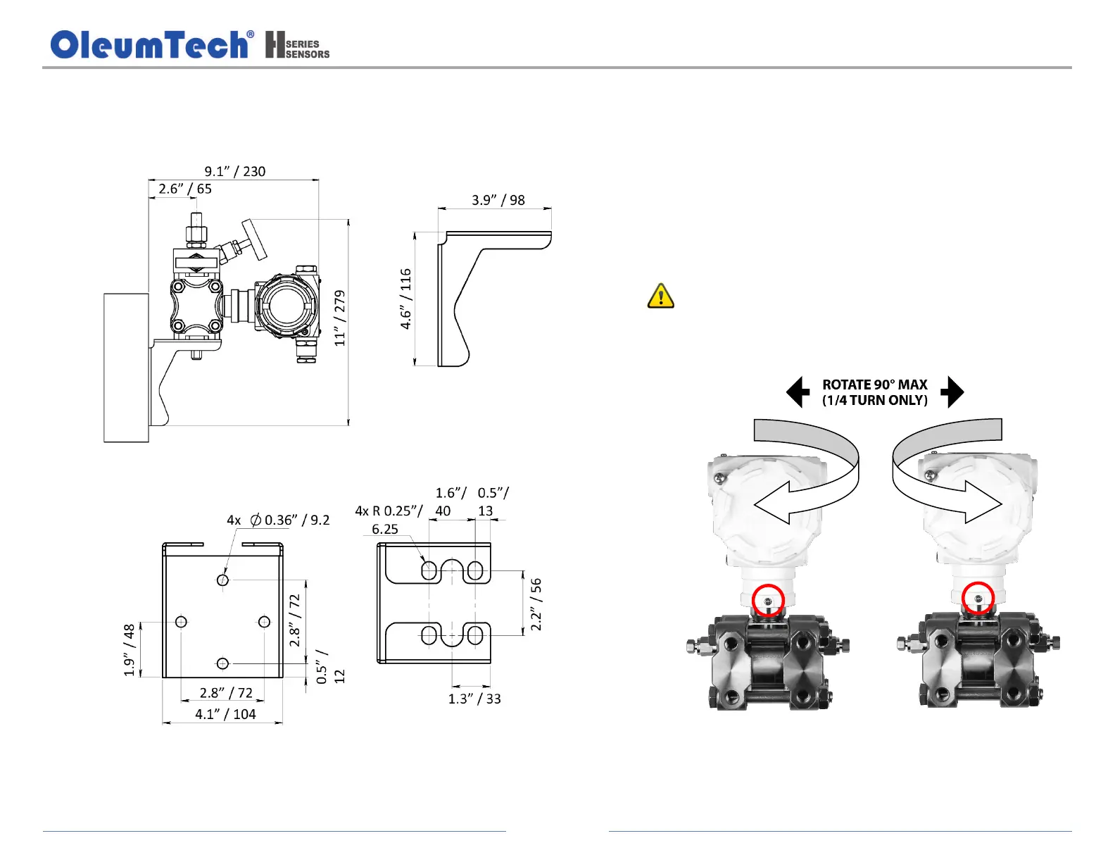 2. Do not rotate the housing by more than 90° max (1/4 turn