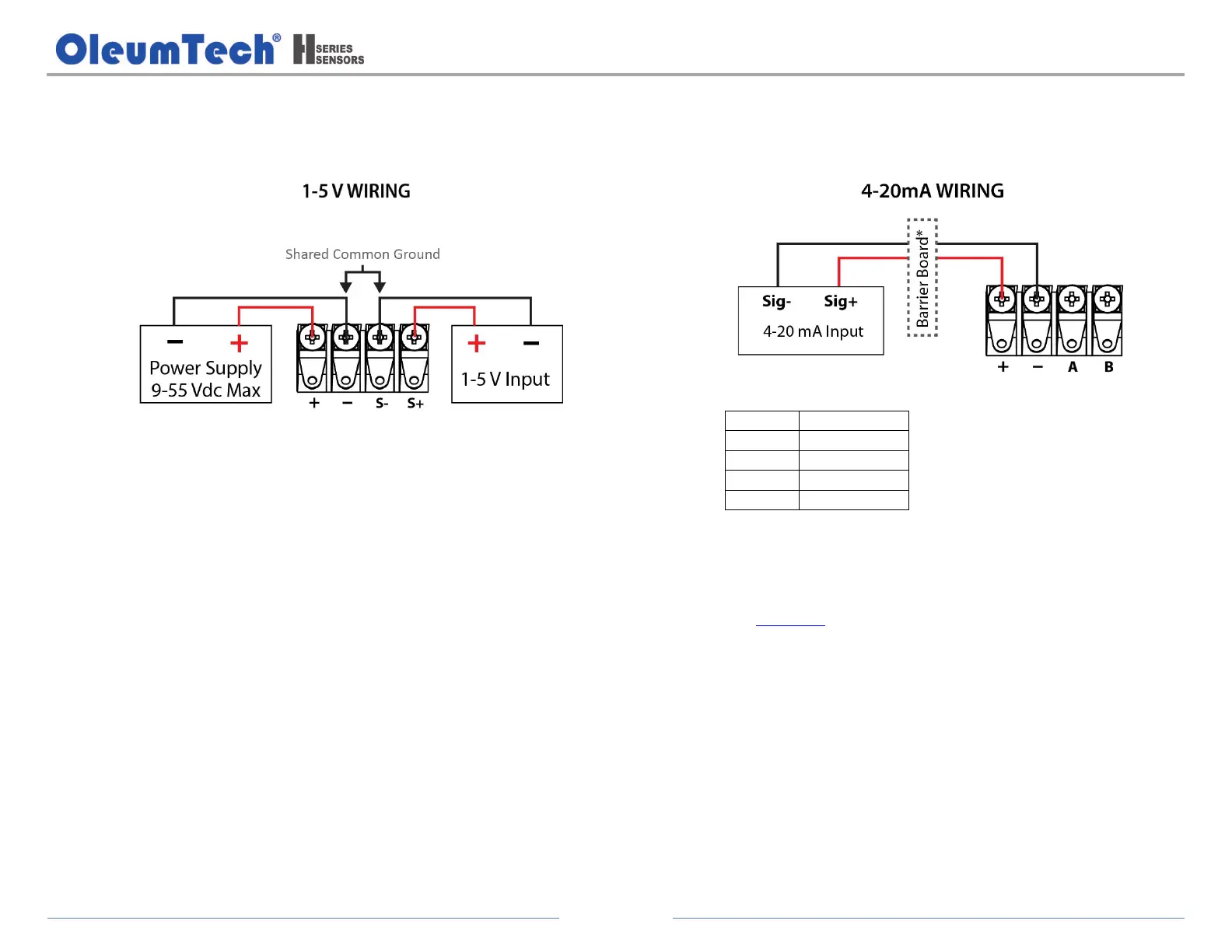 OleumTech H Series - Wiring Configurations; b. 1-5 V Wiring; c. 4-20 mA Wiring