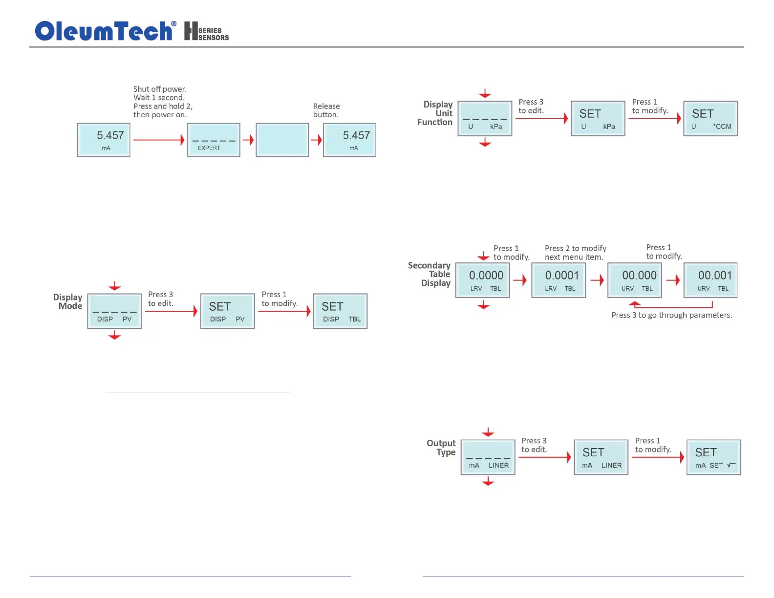 % = Percentage, PV = Pressure Value (Default), mA = Current,