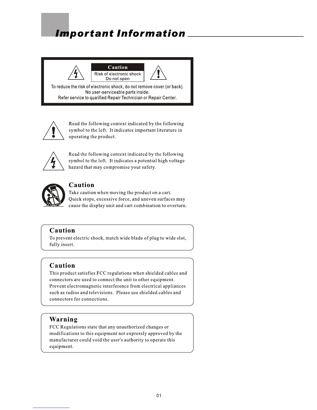 Olevia 427V - Important Information and Safety Precautions; General Safety Cautions and Warnings