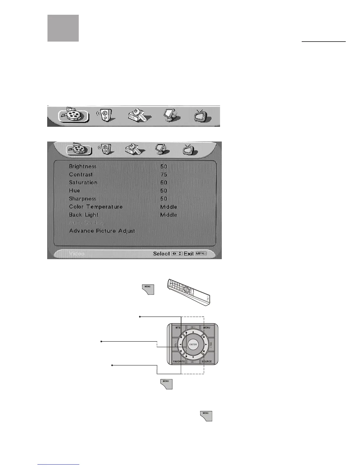 1. Press "Menu" button to enter OSD