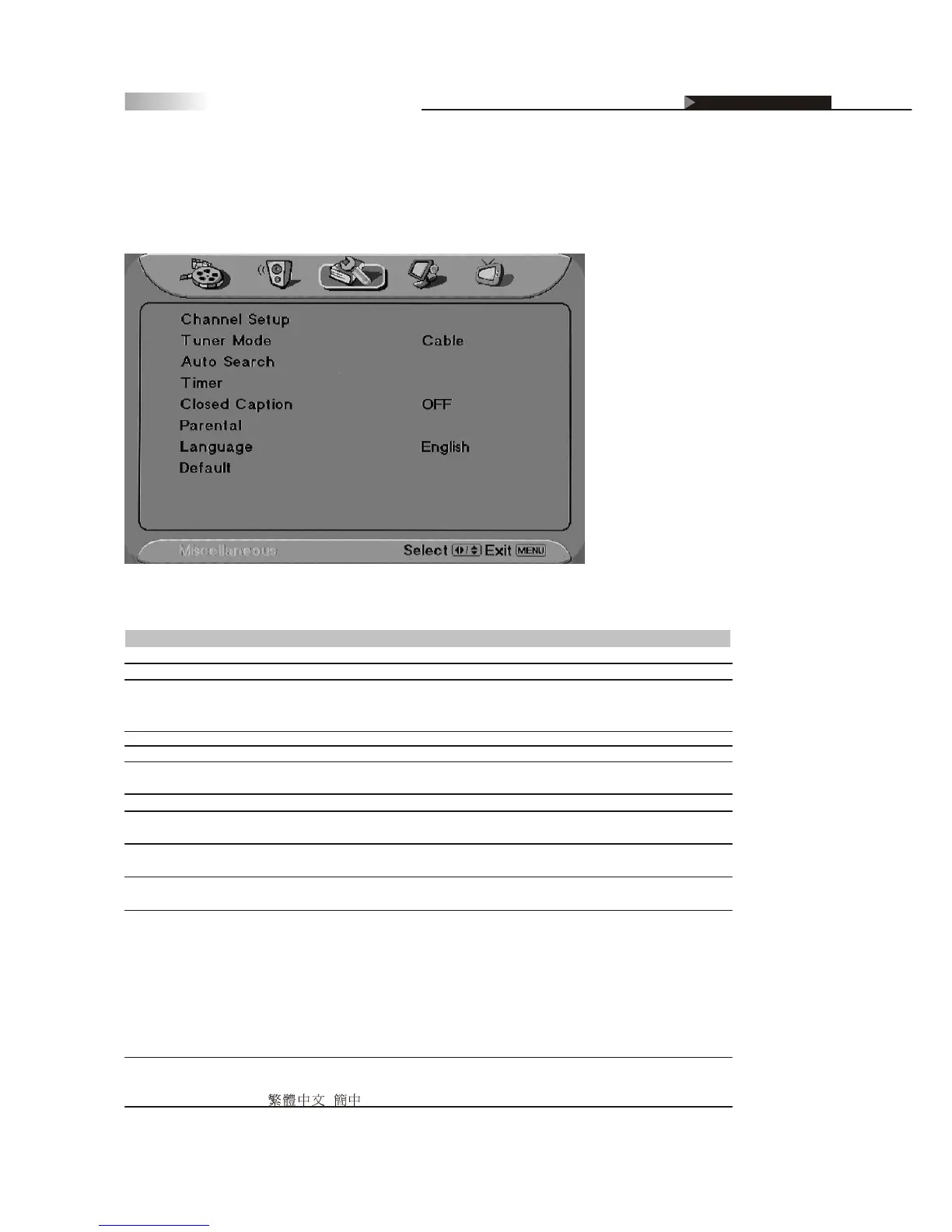 preference, including channel setup, choosing tuner modes, setting up