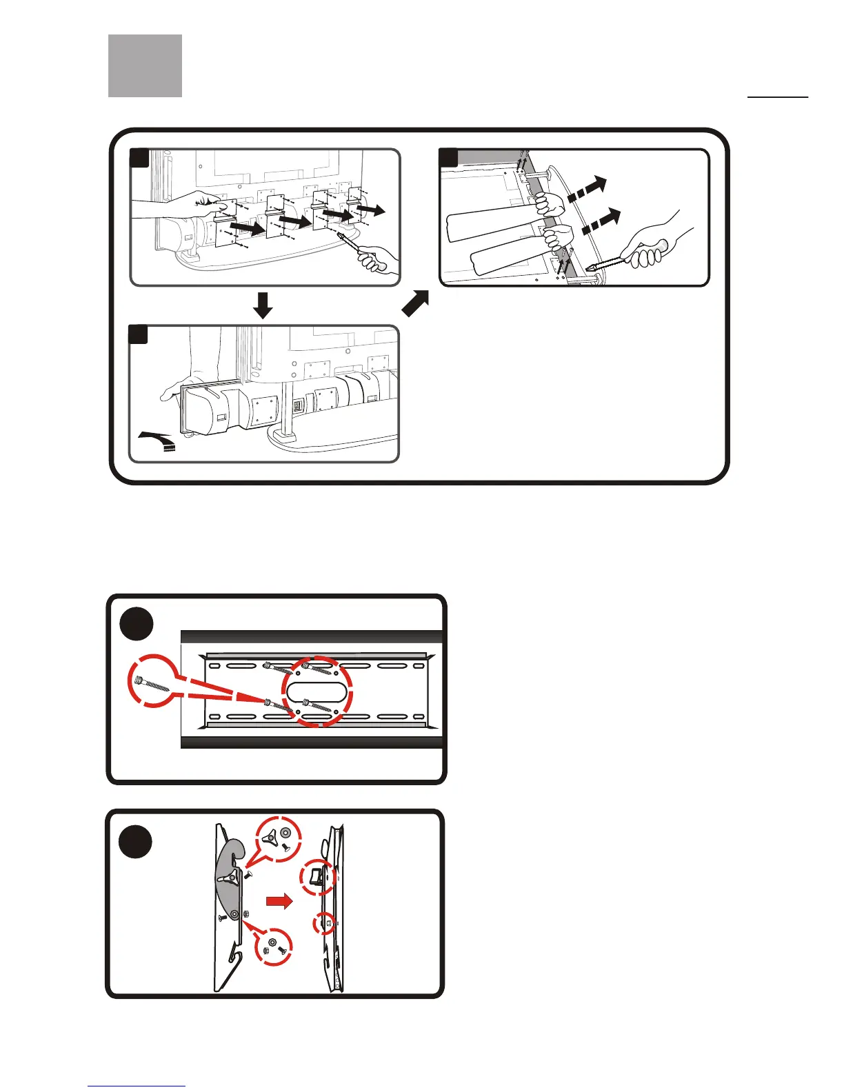 1.Before using wall mount, please read manual of wall mount and following assembly guide.