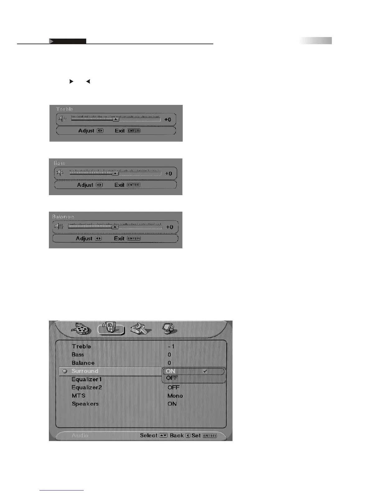Use the and remote buttons to adjust each Audio sound quality, as