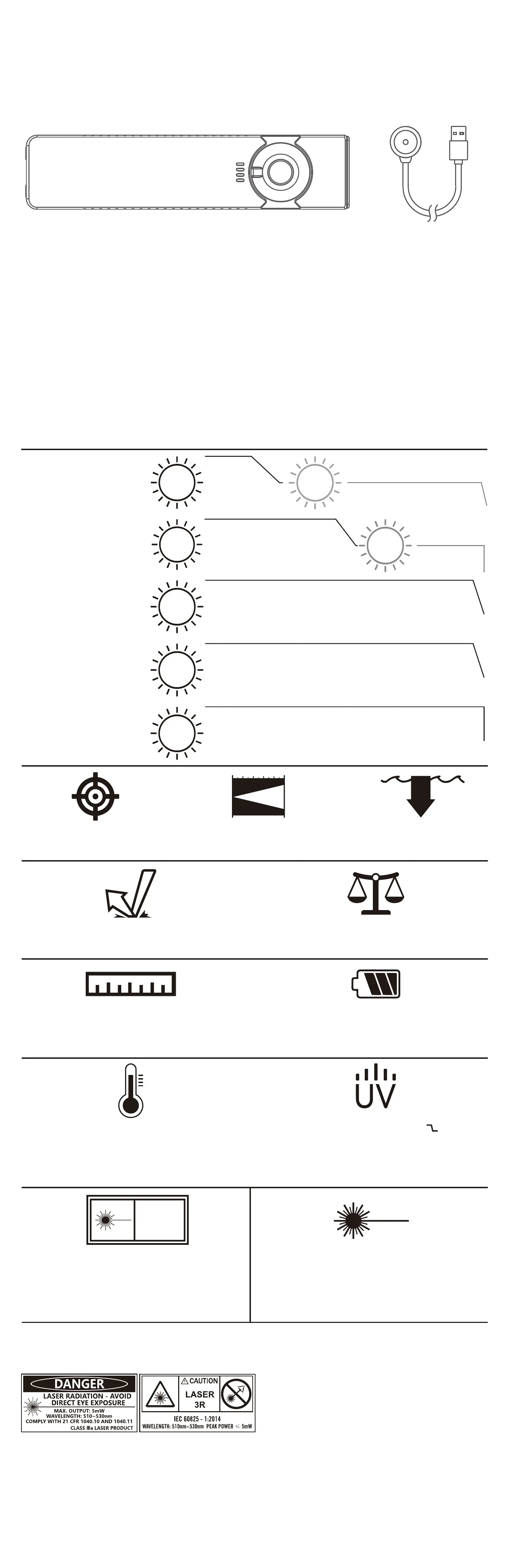 ขณะเลเซอร์เปิดอยู่ กดปุ่มกลางสองครั้งเพื่อเปิดไฟสีขาวระดับสว่างสูง