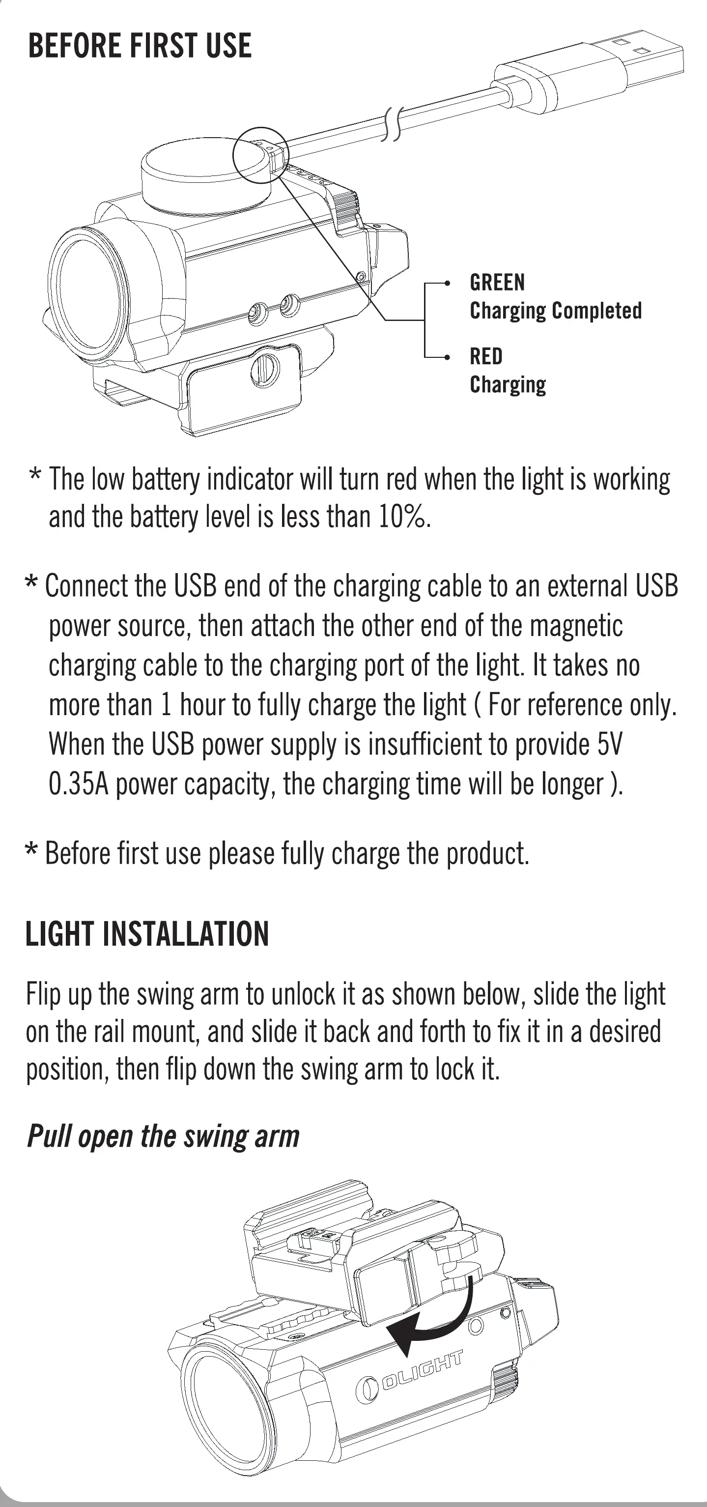 Flipuptheswingarmtounlockit asshownbelow,slidethelight