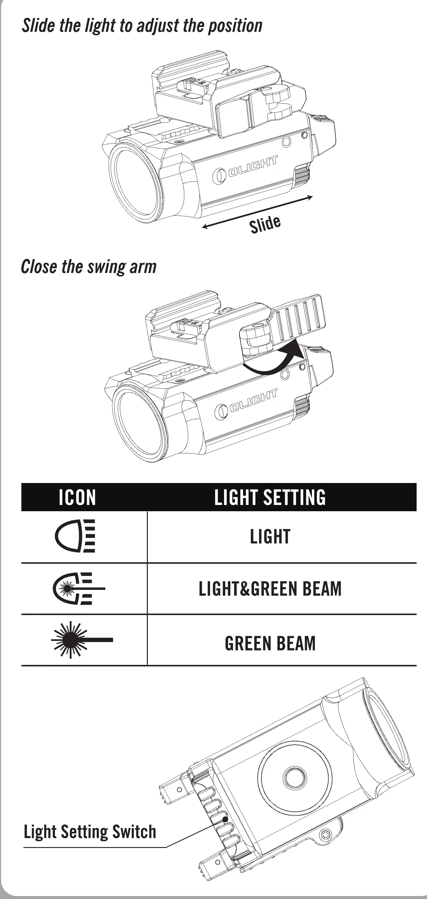 Flipuptheswingarmto unlockit asshownbelow,slidethelight