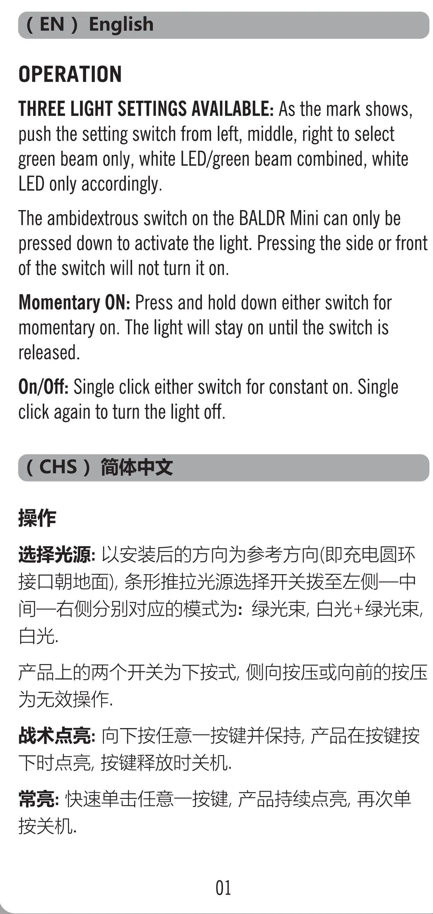 Theambidextrousswitchonthe BALDRMinicanonlybe