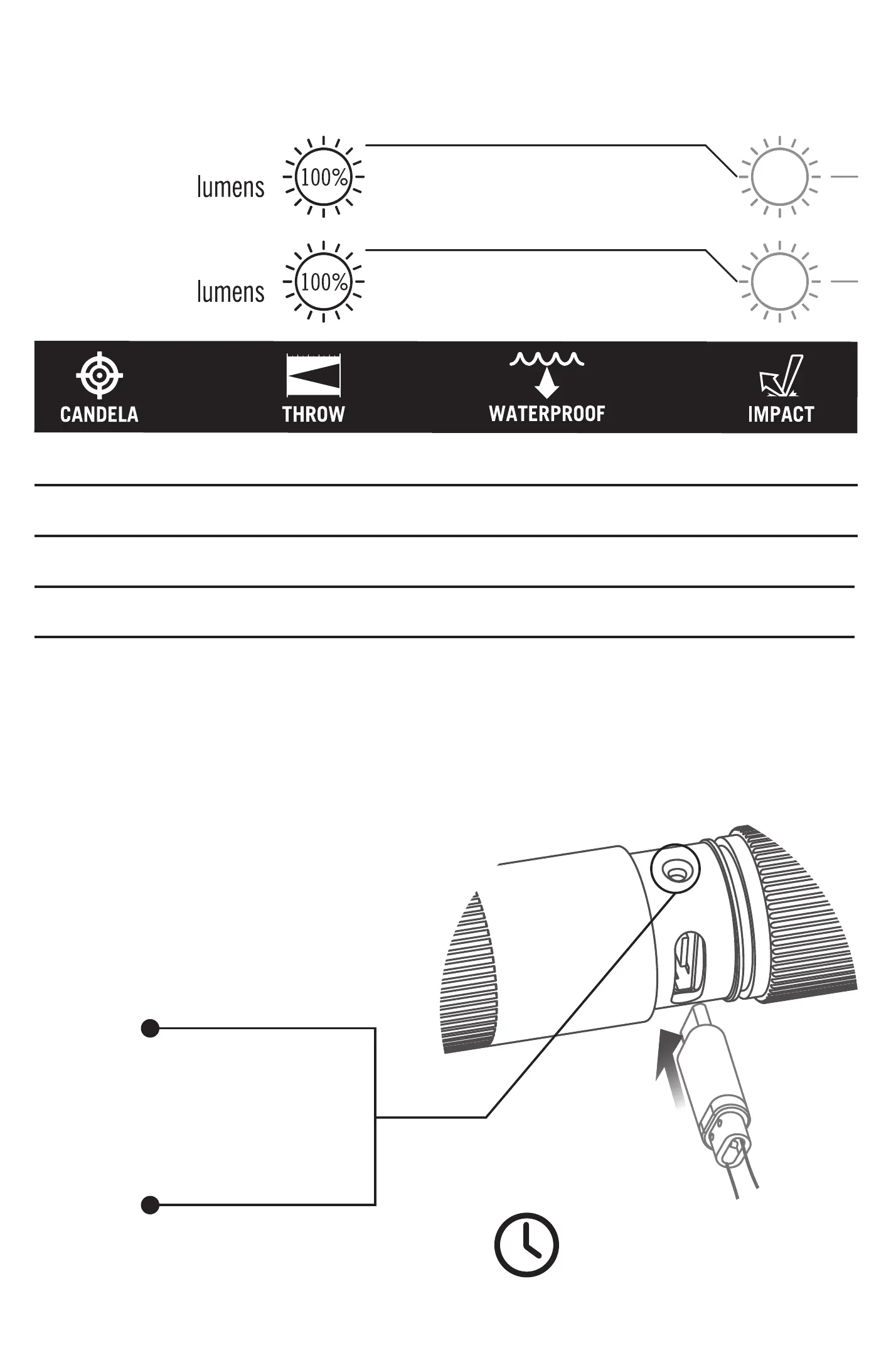 NOTE: The output brightness will decrease as the battery power