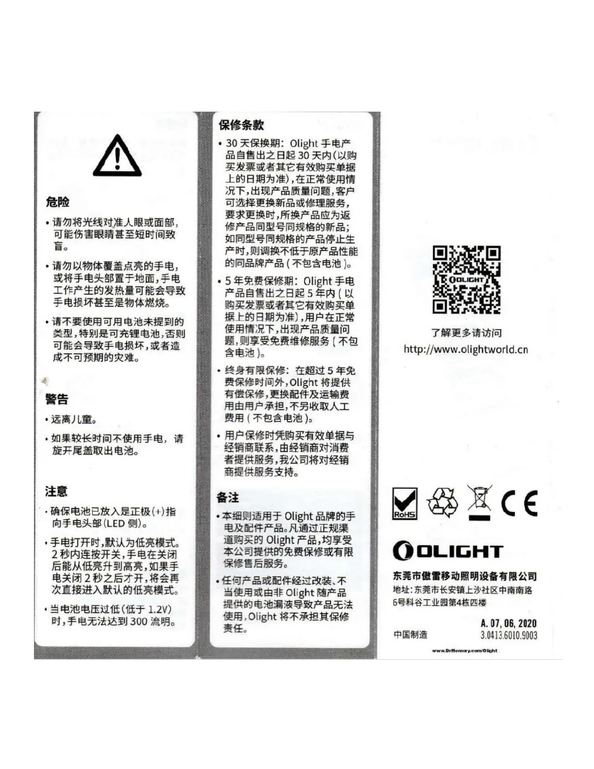OLIGHT i5T EOS - Safety Precautions; General Safety Warning; Heat and Object Safety; Battery Type Warning