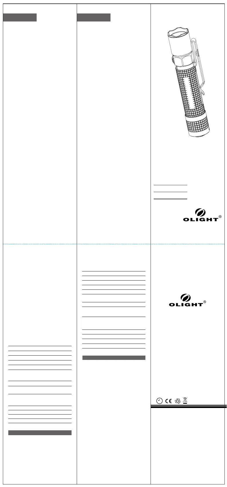 感谢您购买Olight LED手电筒, 在