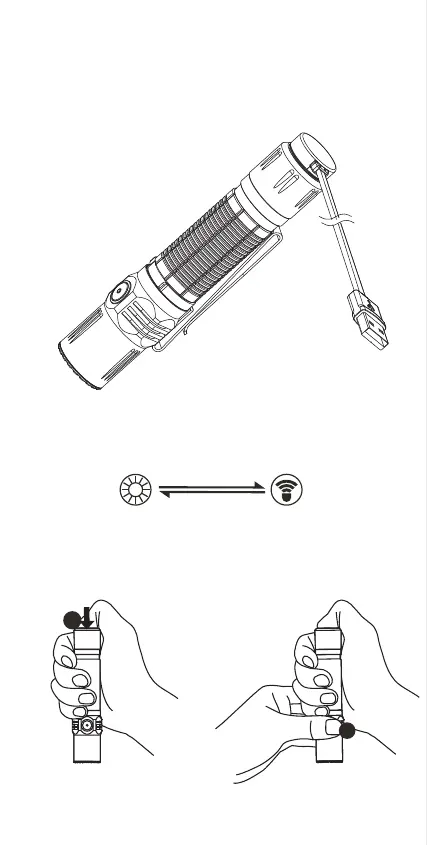 부드럽게 누르기: 순간점등으로 터 보 밝기가 작동됩니다