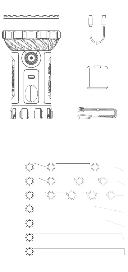 • Overheat protection circuit: If the flashlight is on at a temperature consistently