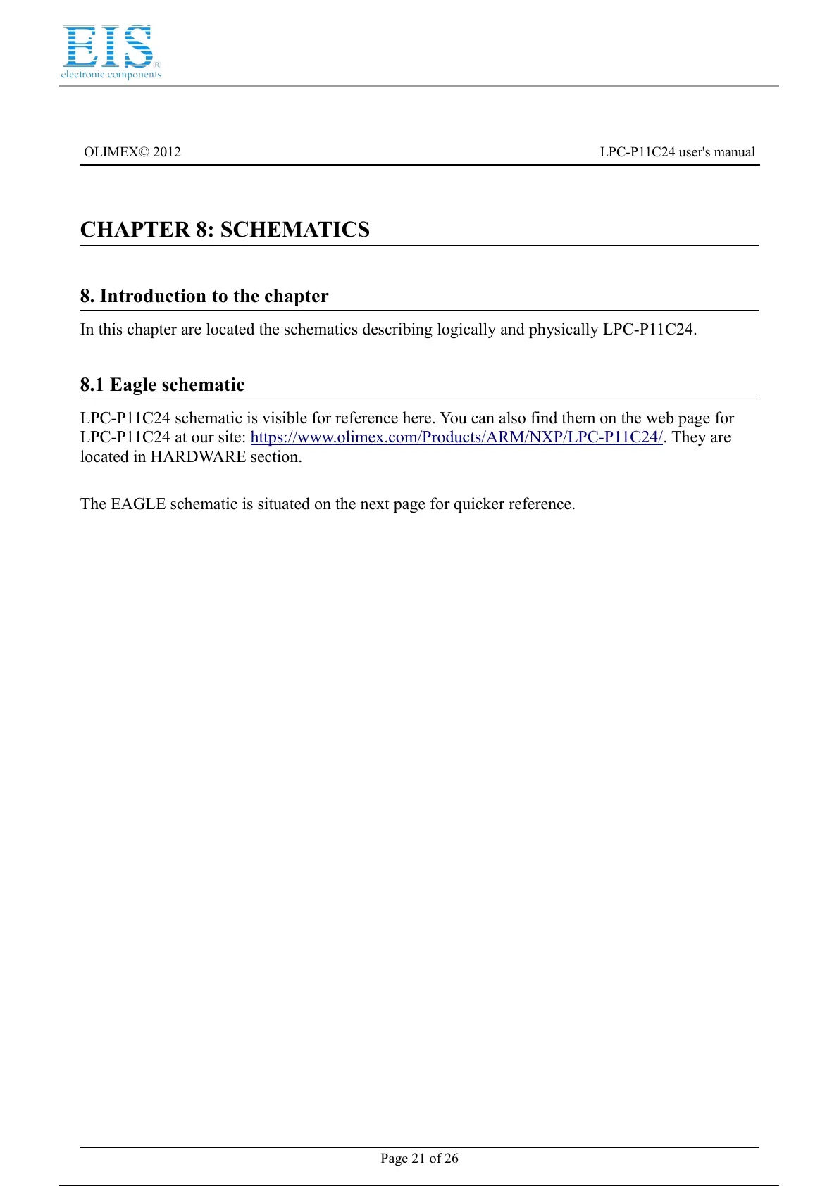 In this chapter are located the schematics describing logically and physically LPC-P11C24.