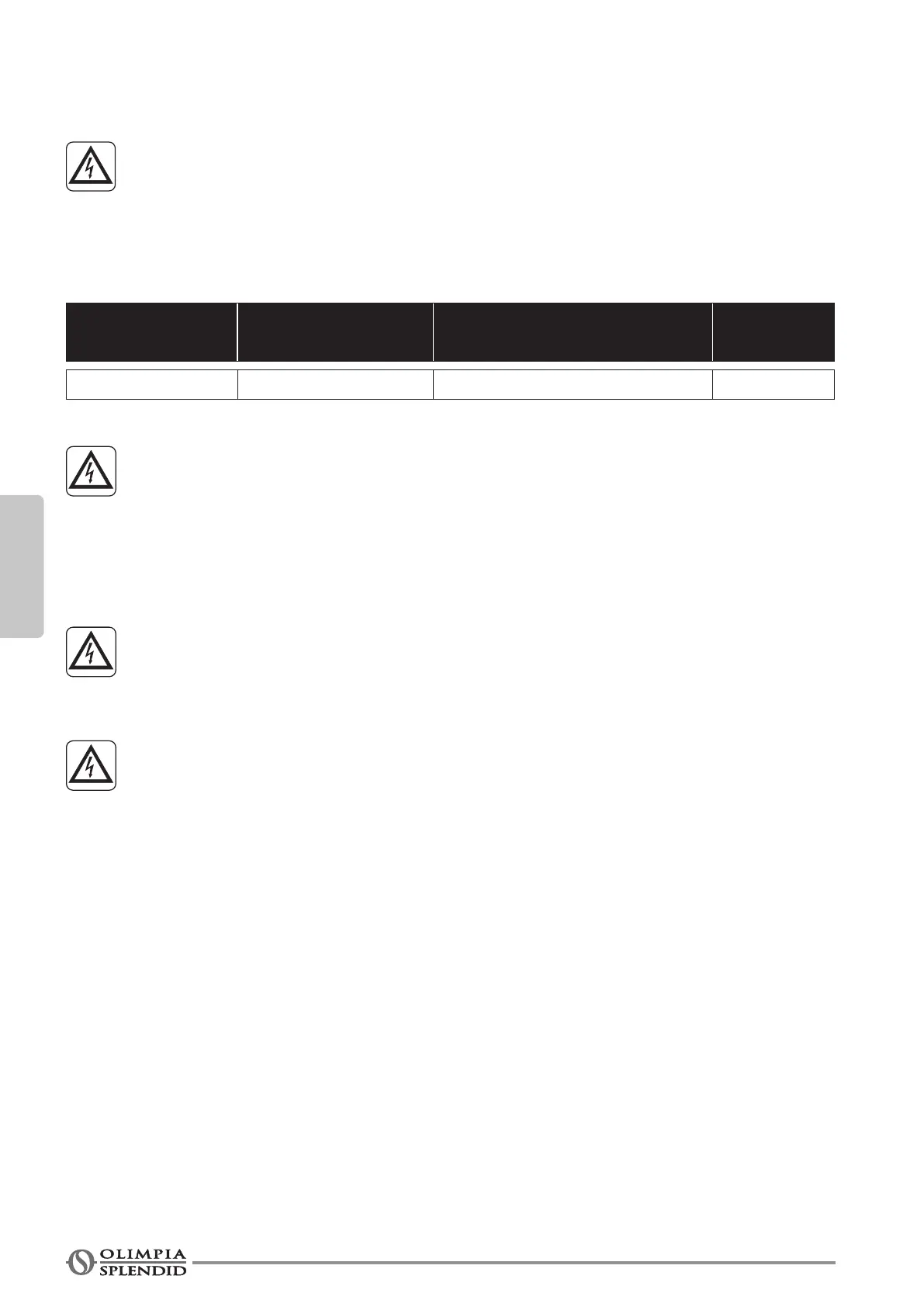 c. Zur Wahl des Mindestquerschnitts des Versorgungskabels siehe unten stehende Tabelle.