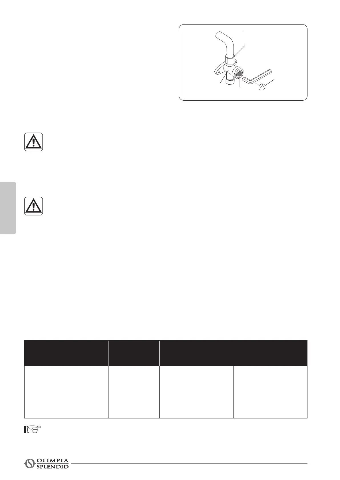 8. Inserire la chiave esagonale nella valvola