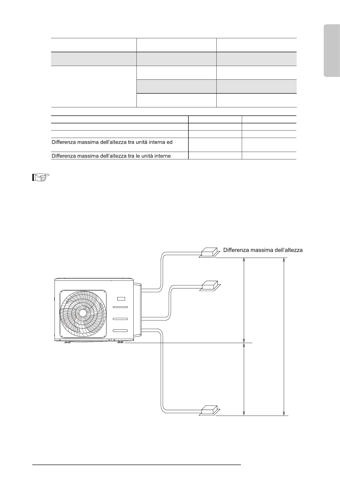Quando si installano più unità interne con una singola unità esterna, assicurarsi che la lunghezza del
